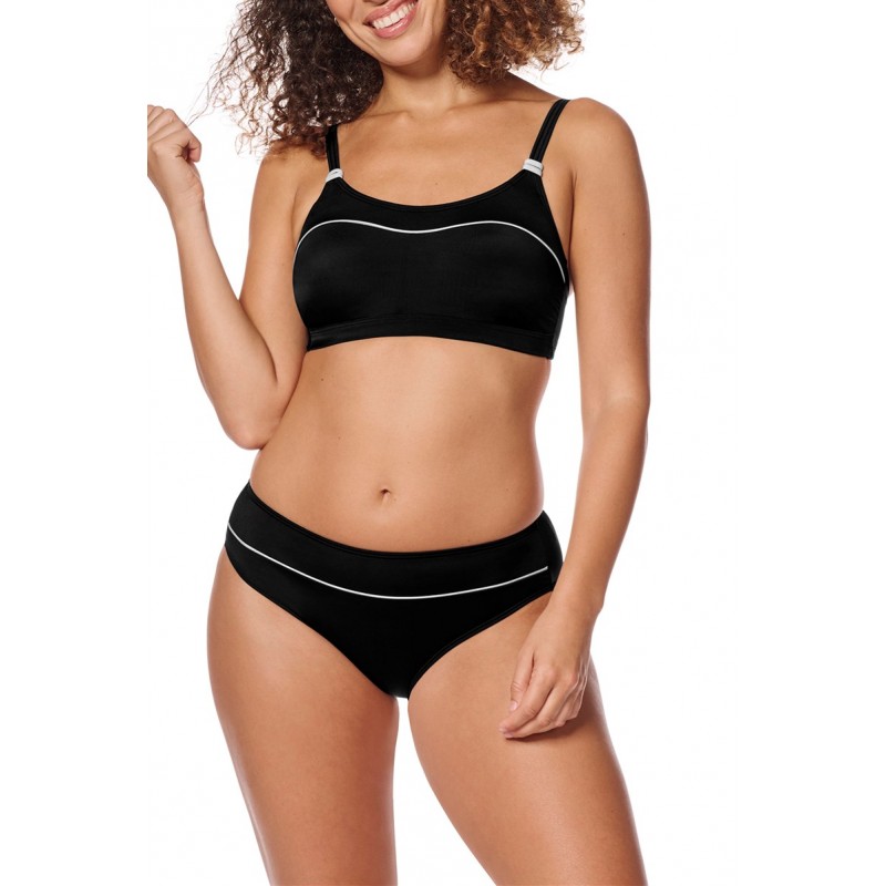 Elegantne kopalke Ravello SB s kovinskimi poudarki z drobnimi, srebrno lesketajočimi se obrobami. Glavna tkanina je izdelana iz recikliranega poliestra, material z odlično UV-zaščito 50+ zagotavlja optimalno zaščito za občutljivo kožo in brazgotine. Vgrajena tehnologija Amoena Wave Seam zagotavlja dodatno oporo pod prsmi in ob straneh z obojestranskimi žepki, ki vašo plavalno obliko Aqua Wave, prsno protezo ali delne proteze varno držijo ob telesu, kar vam zagotavlja celodnevno samozavest v vodi in zunaj nje.